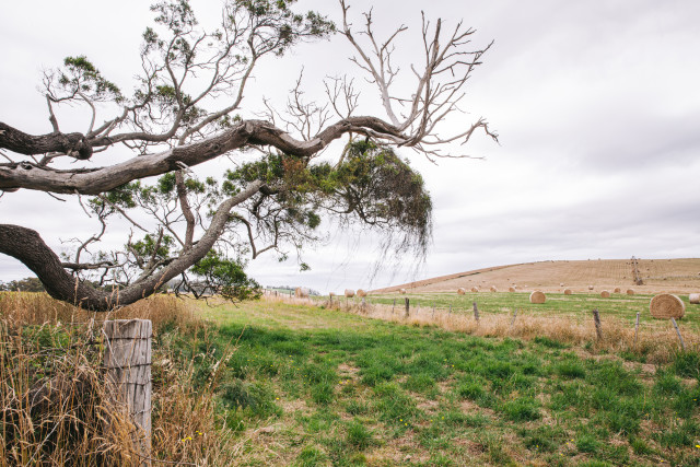 Lone tree and the rustic countryside.