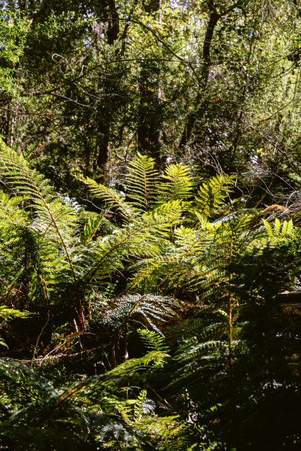 Woods, rocks, and trees.