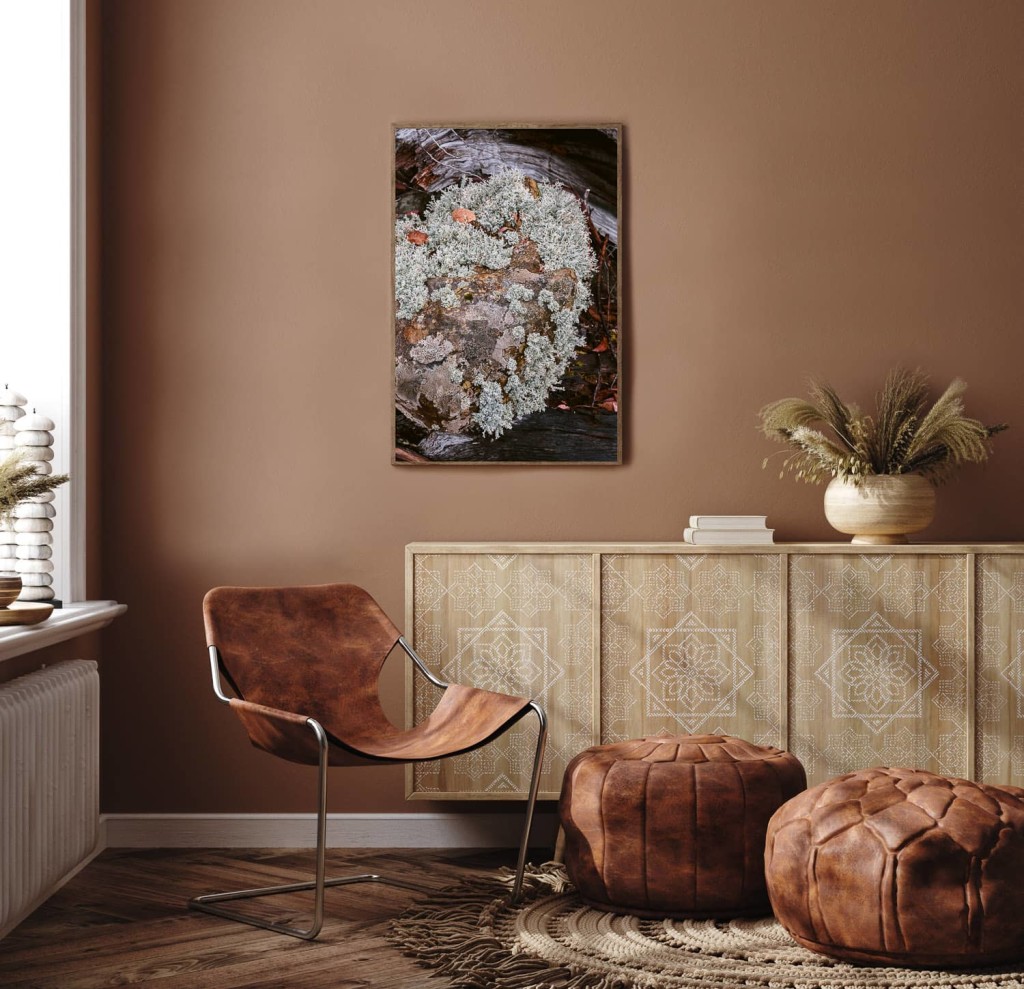 Fine Art — cotton-polyester canvas and Fine Art inkjet printing; museum grade lacquer offers a muted lustre finish and protects against moisture, abrasion and UV damage.