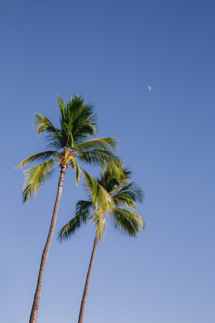 Can you spot the moon above the palm trees.
