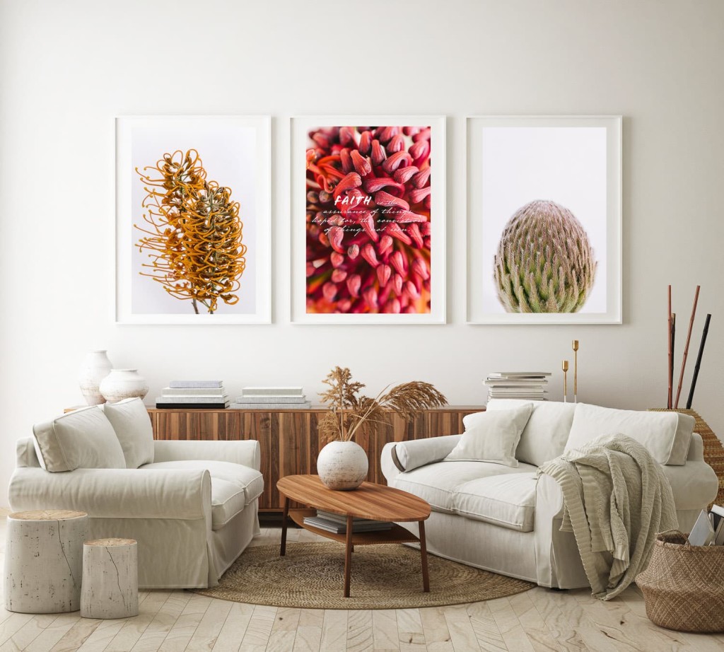 Standard — cotton-polyester canvas and long-life latex inkjet printing; museum grade lacquer offers a muted lustre finish and protects against moisture, abrasion and UV damage.